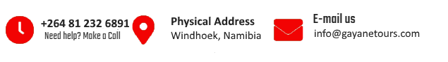 Entry into Namibia is granted for a maximum of 90 days per year. Countries not listed above require Visa which can be obtained by Gayane Tours & Safaris in Namibia.